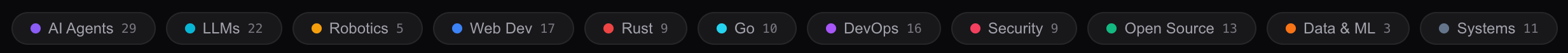 The real magic is in the tags. I built smart filtering that automatically categorizes content: AI Agents, LLMs, Robotics, Web Dev, Rust, Go, Security. You name it. Click a tag, and suddenly you’re only seeing what matters for your interests.